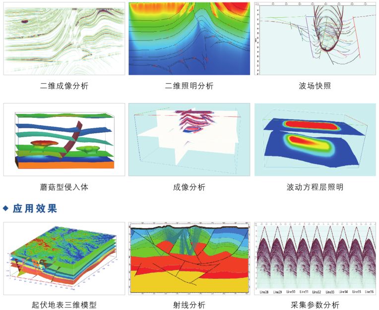 模型正演系列软件包括二维模型正演与照明、三维地质建模、三维波动正演与照明分析等软件,能够完成二维、三维复杂构造建模、地震波场数值模拟、观测系统照明分析和成像分析等工作,是双复杂区地震勘探采集设计的关键辅助工具。
