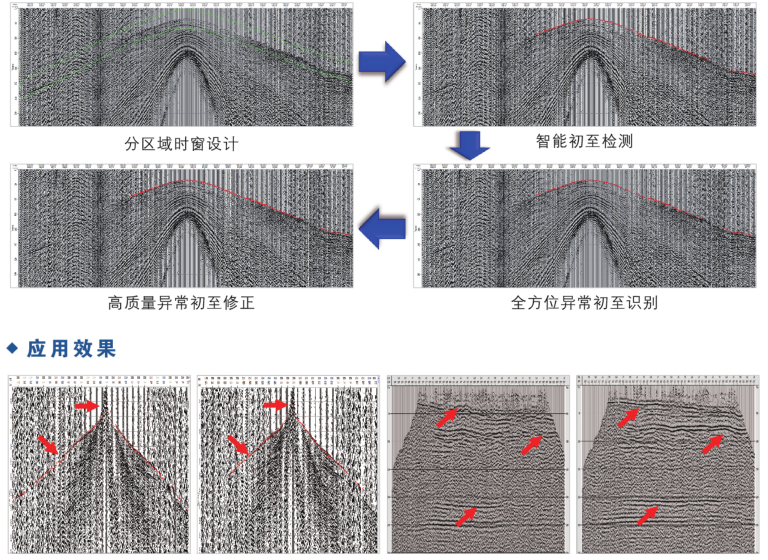 分区域时窗设计技术、改进型U-Net网络初至拾取技术、CNN卷积神经网络初至评价技术、多参数初至评价技术、GAN对抗神经网络初至修正技术、蚁群算法初至修正技术