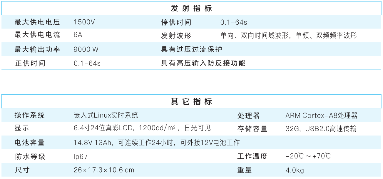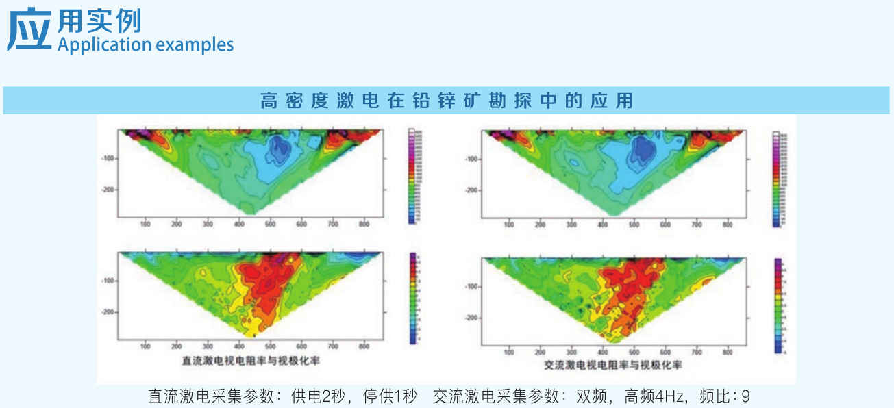 该系统以时频激电仪为测控主机(以下简称主机),通过选配不同的多路电极转换器及配套电缆,实现二维普通高密度电阻率测量、高密度相位激电(一种高效的激电测试方法)、双频激电测量和高密度直流激电测量,以及多方位三维高密度电阻率测量。
