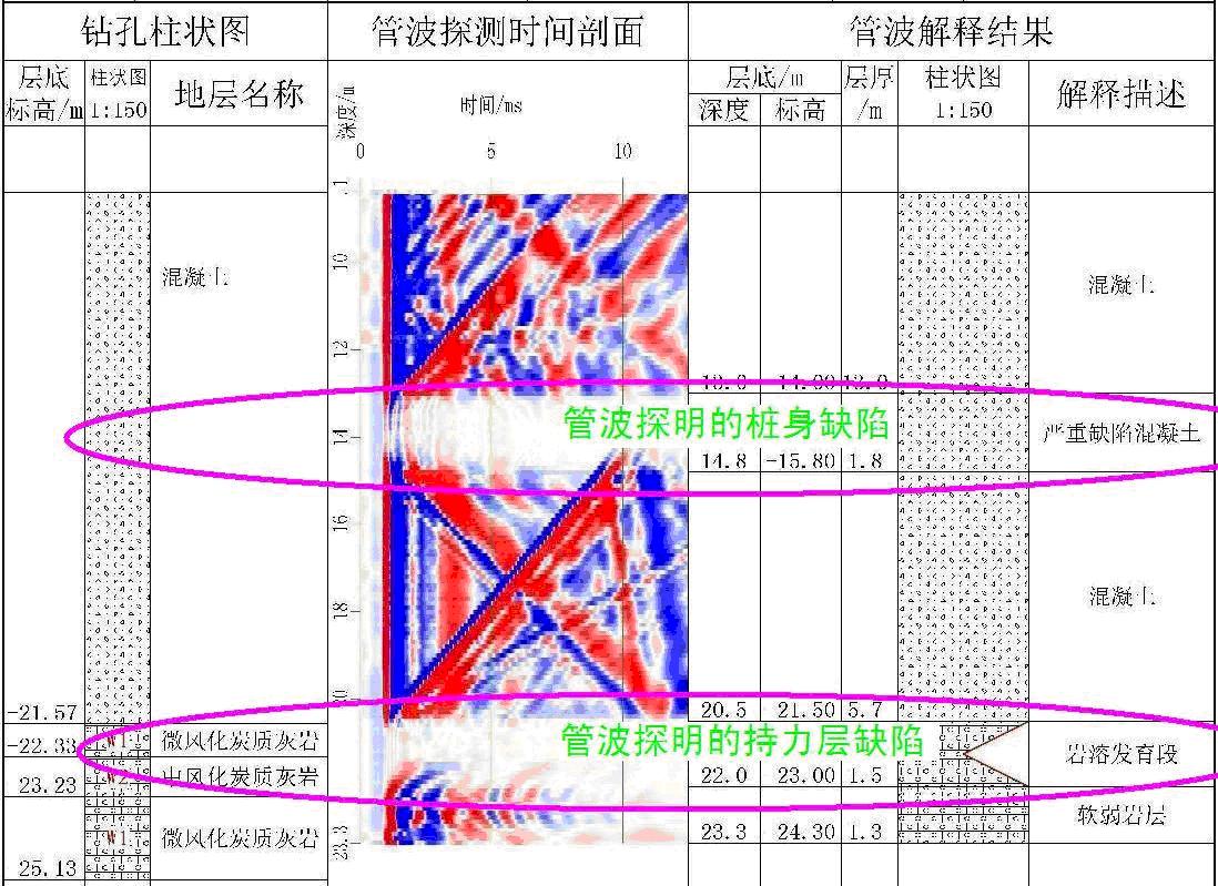 2、分辨能力:可分辨大于0.3m孔旁岩溶,可分辨大于5cm裂隙、软弱岩层、桩底沉渣;