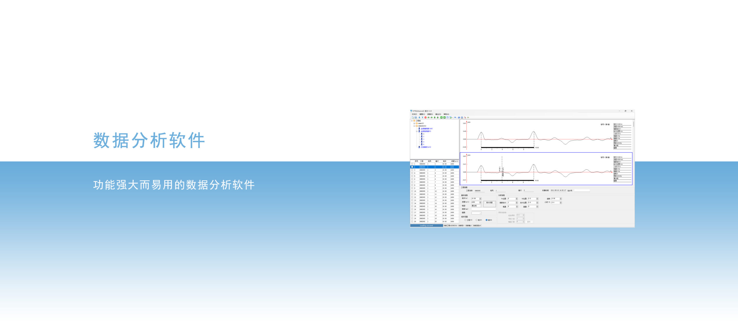 分析软件功能齐全,操作方便。不仅具有指数放大、高通和低通滤波等常规分析功能,而且具有先进的小波分析功能,能使曲线去伪存真,让桩身质量本质表露无遗