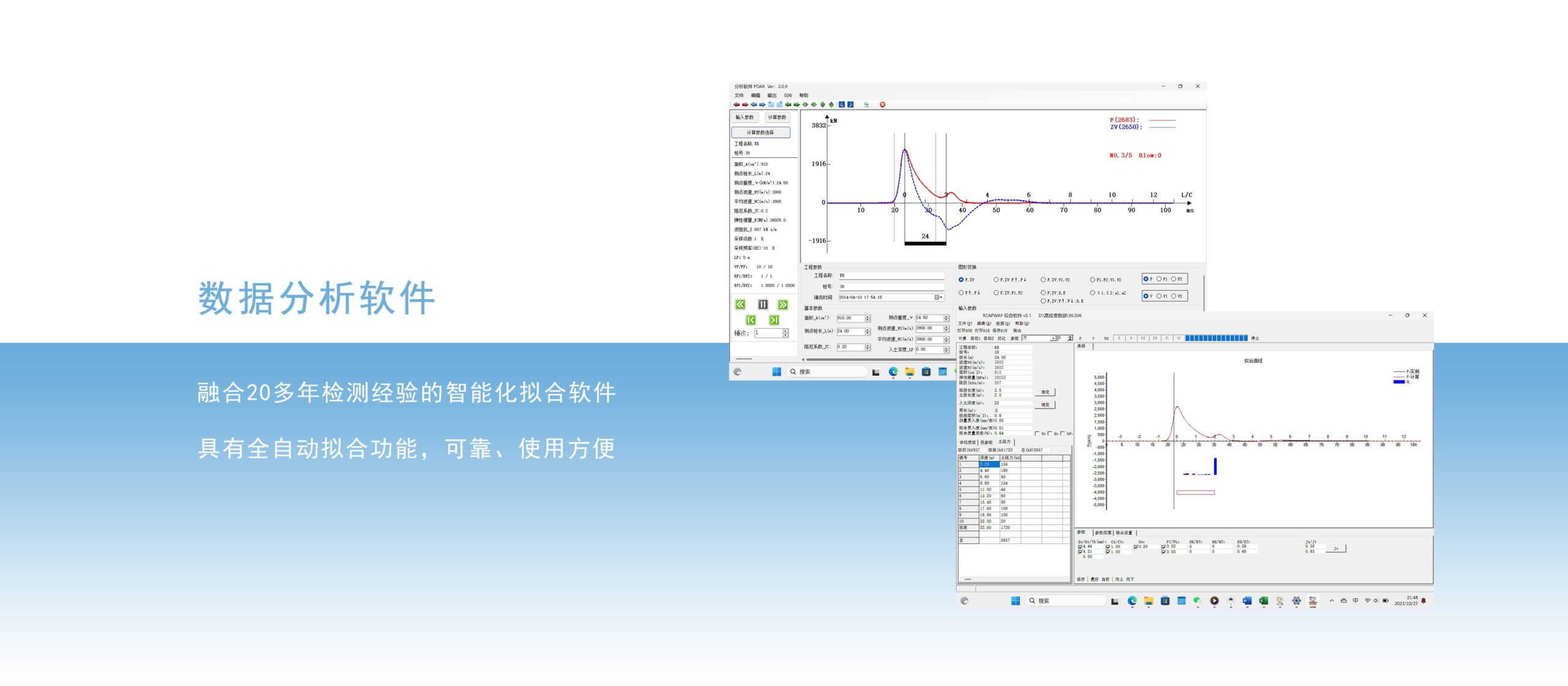 能进行双速度分析,分离上、下行波,以帮助分析既有结构或未知长度的基桩