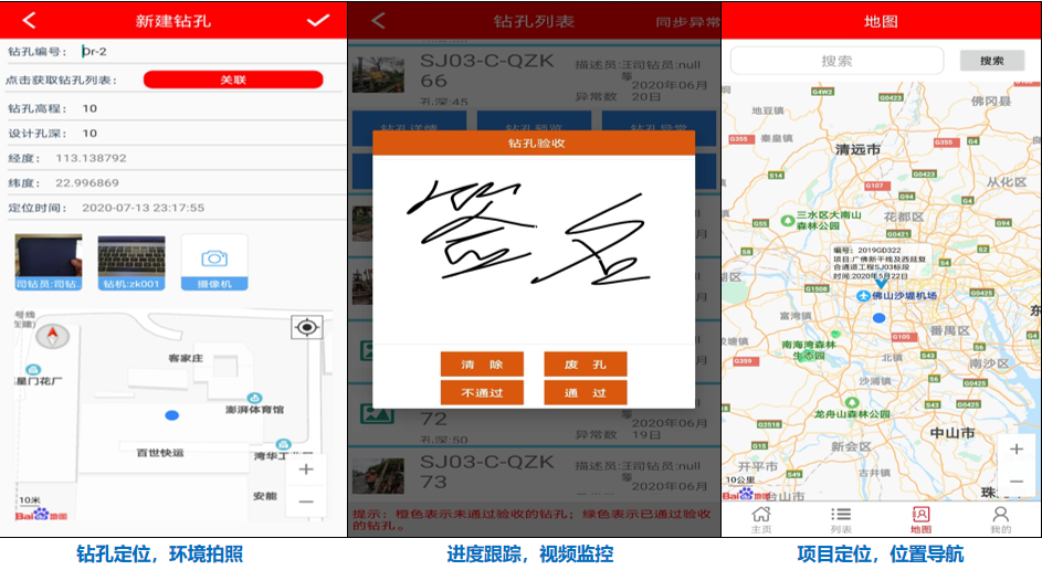 以互联网、BIM、GIS、AI等技术融入传统勘察业务,广东地空智能科技有限公司开发的GIT-EIS工程勘察作业与质量监管数字化平台,精准地为勘察领域政府监管部门、勘察设计单位、施工图审查单位、业主开发单位提供勘察外业、土工试验、内业数据处理、勘察报告、岩土BIM、项目管理全过程一站式服务,以“实时、实地、实人”操作实现对勘察项目的全周期管理和重点环节预警,通过外业信息化数据采集减少重复劳动,进一步提高勘察项目的管理水平、提升勘察单位的生产效率,促进勘察质量的提升和辅助施工图审查。平台采用SaaS云模式B/S架构,主要由Web管理后台和移动APP端两部分组成,分为勘察外业数据采集系统、勘察内业生产系统和勘察作业监管系统。勘察外业数据采集移动端充分发挥智能移动设备的功能特性,提供身份验证、外业编录、现场拍照、定位、视频实时传输等手段,取代纸质记录;自动获取时间位置,杜绝资料造假;数据实时上传,配合监控,有效监管,实现外业行为的全过程信息化作业与监督管理。勘察内业生产系统结合GIS地图,对辖区内所有项目进行数据汇总和分析。通过物联感知与移动端系统互联互通,数据共享,无需重复录入;多种数据导入,高效输出成果;自动创建三维地质模型,成果更直观。勘察作业监管系统实时查看勘察数据,视频监控,实现过程留痕,BIM+GIS勘察过程可视化管理,使得管理人员对外业勘察业务进行实时动态管理,真正做到“人在干、数在算、云在管”,全面实现野外现场勘察工作信息化管理。